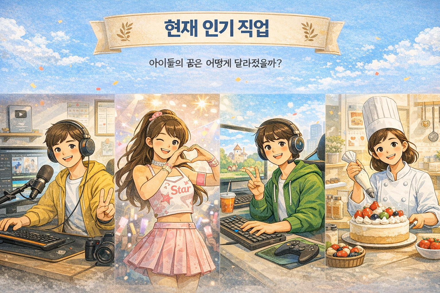 아이의 진로 이야기를 들을 때 많은 부모는 당혹감을 느낀다. 과거에는 선생님이나 의사처럼 안정적이고 익숙한 직업이 아이들의 대표적인 꿈이었다. 그러나 요즘 아이들은 유튜버, 게임 개발자, 아이돌과 같이 이전 세대가 쉽게 떠올리지 못했던 직업을 자연스럽게 말한다. 이 차이는 단순한 취향의 변화가 아니라, 사회 환경과 직업 구조의 변화에서 비롯된 것이다.